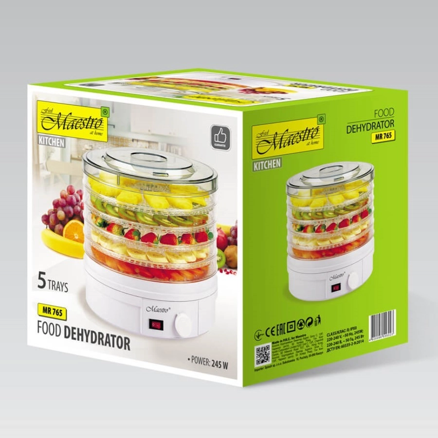 Žāvētājs Maestro ir aprīkots ar 5 sietiem ar 32 cm diametru, kas ļauj vienlaikus žāvēt lielu daudzumu izejvielu.