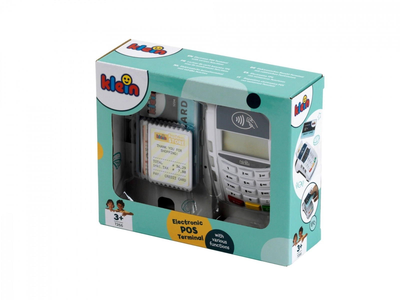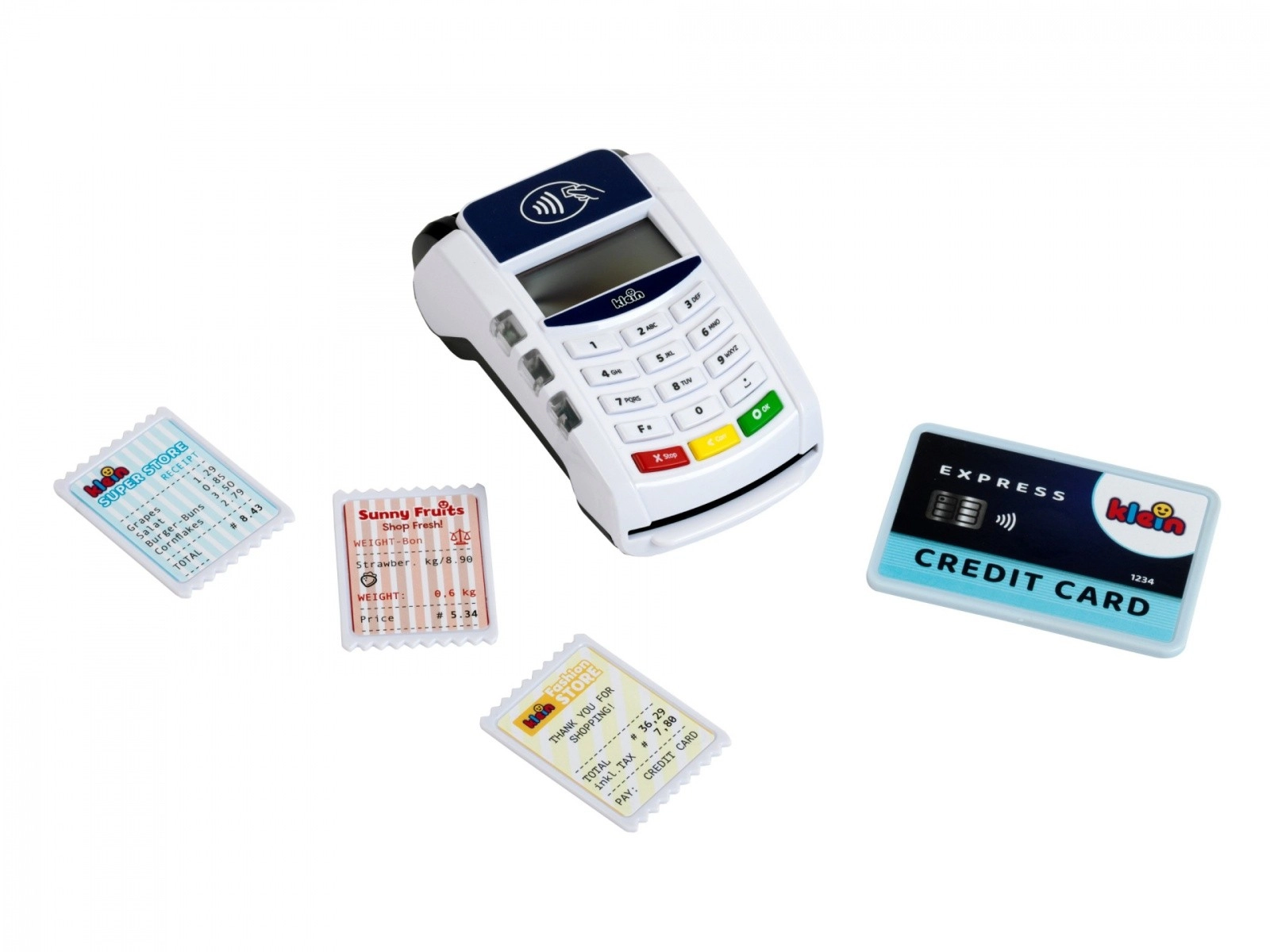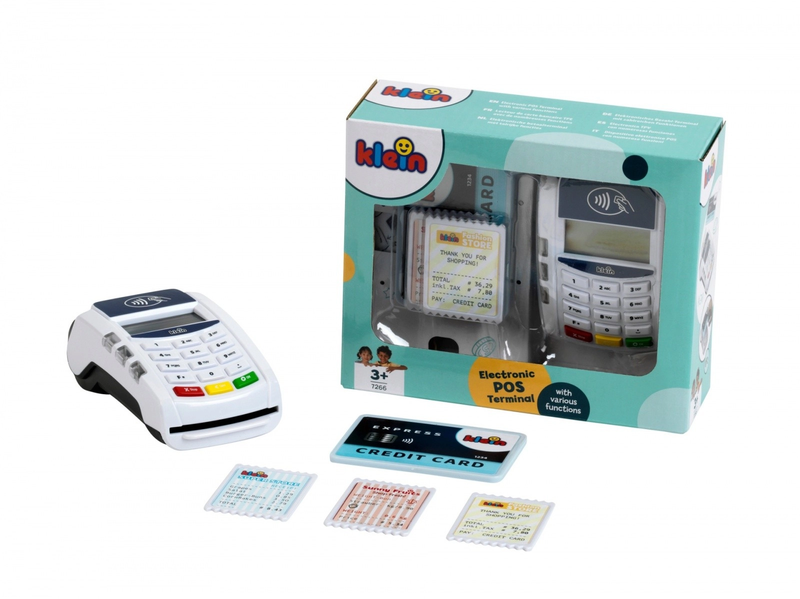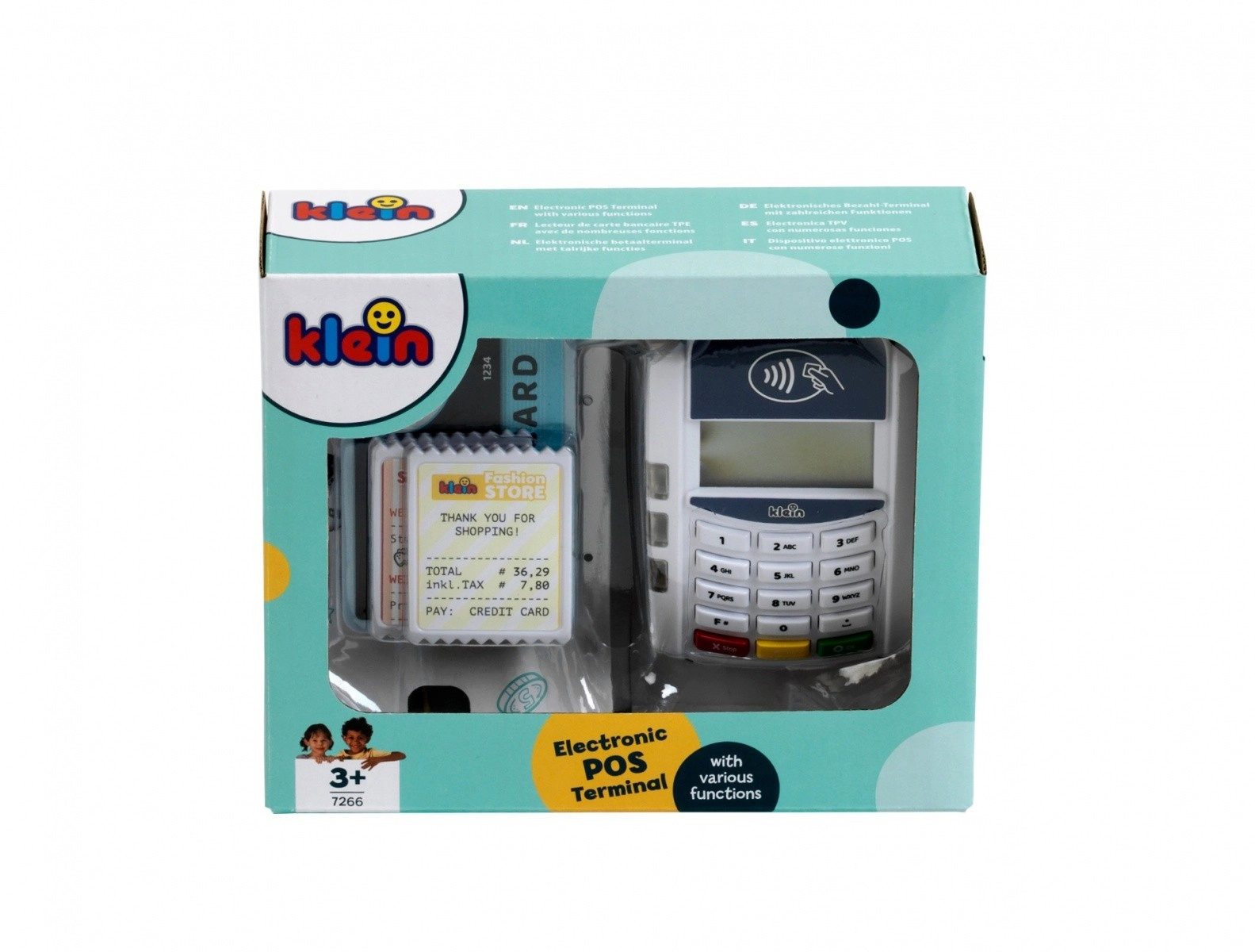Interaktīvais bērnu POS maksājumu terminālis no zīmola KLEIN pārvērš veikala spēli reālistiskā pieredzē. Tas piedāvā bezskaidras naudas (bezkontakta) maksājumus, gaismas un skaņas efektus, kā arī ietver maksājumu karti un čekus. Lielisks veids, kā attīstīt iztēli, sociālās prasmes un izpratni par iepirkšanās pamatprincipiem.