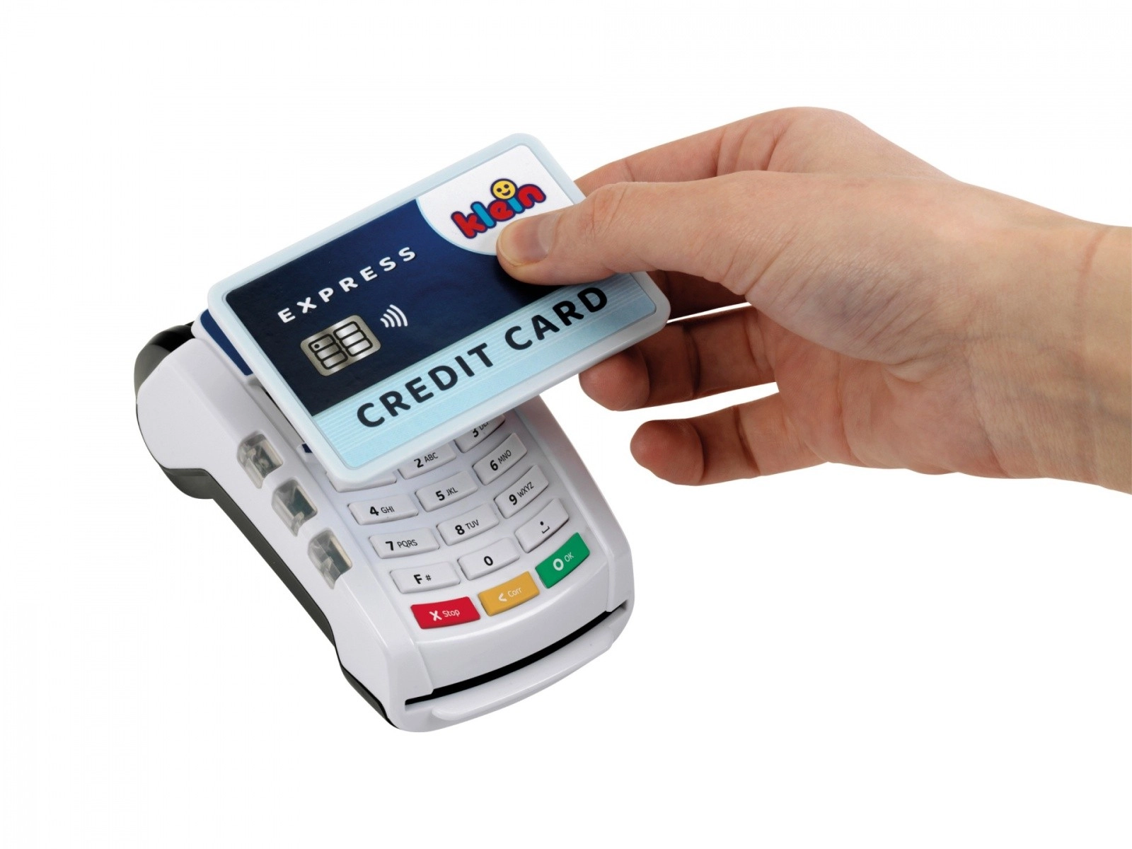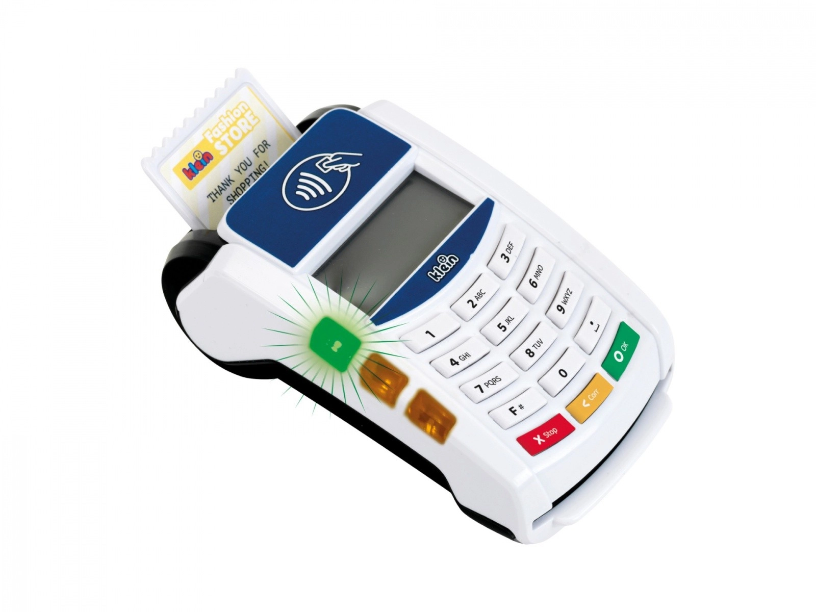 Atklājiet aizraujošo norēķinu pasauli ar bērnu termināli KLEIN, kas uzticami atdarina īstu ierīci. Pateicoties bezkontakta tehnoloģijai, skaņām un gaismas efektiem, bērni var iejusies gan pārdevēja, gan pircēja lomā un apgūt, kā notiek maksājumu transakcija.