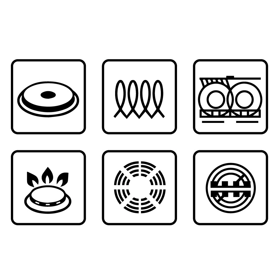 Savietojama ar gāzi, elektrību, stikla keramikas virsmu un indukciju. Piemērota arī cepeškrāsnij līdz 260 °C ēdienu pabeigšanai.