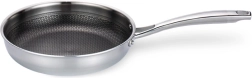 Izturīga nerūsējošā tērauda panna ar 28 cm diametru un trīsslāņu konstrukciju (nerūs. tērauds 430 / alumīnijs / nerūs. tērauds 304), ātru un vienmērīgu siltuma sadali un noturīgu, nesaskrāpējamu virsmu ar sešstūra “bišu šūnu” tekstūru. Piemērota visiem plīts veidiem, tostarp indukcijai, krāsnij līdz 260 °C un trauku mazgājamajai mašīnai.