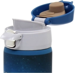 Pogas vāciņš ar iemuti ļauj ērti lietot ar vienu roku, turklāt to papildus nodrošina slēdzis pret atvēršanos. Dubults blīvējums novērš noplūdes, neslīdoša gumijas pamatne nodrošina stabilitāti, bet gumēta virsma – drošu satvērienu arī ceļā. Pateicoties slaidajai formai, krūze der lielākajai daļai automašīnu turētāju.