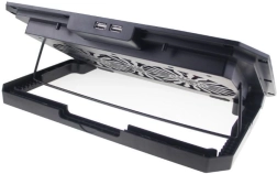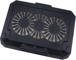 Dzesēšanas paliktnis ir paredzēts klēpjdatoriem līdz 17" un apvieno efektīvu dzesēšanu ar darba komfortu. Divi lieli 140 mm ventilatori ar ātrumu līdz 1300 apgr./min. nodrošina vienmērīgu gaisa plūsmu caur metāla režģi, bet redzamais LED apgaismojums piešķir stilīgu akcentu jūsu darba vietai.