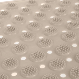 Desmitiem piesūcekņu paklājiņa apakšpusē droši turas pie gludām vannu un duškabīņu virsmām, lai mazinātu paslīdēšanas risku.
