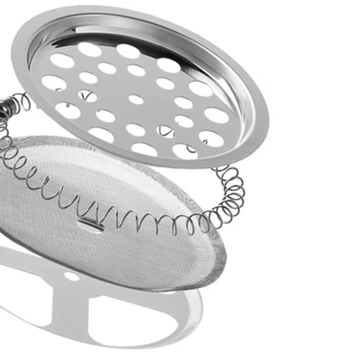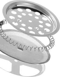 Metāla sietiņš ar atsperi droši aiztur biezumus un tējas lapiņas, nodrošinot tīru, pilnīgu un līdzsvarotu dzērienu.