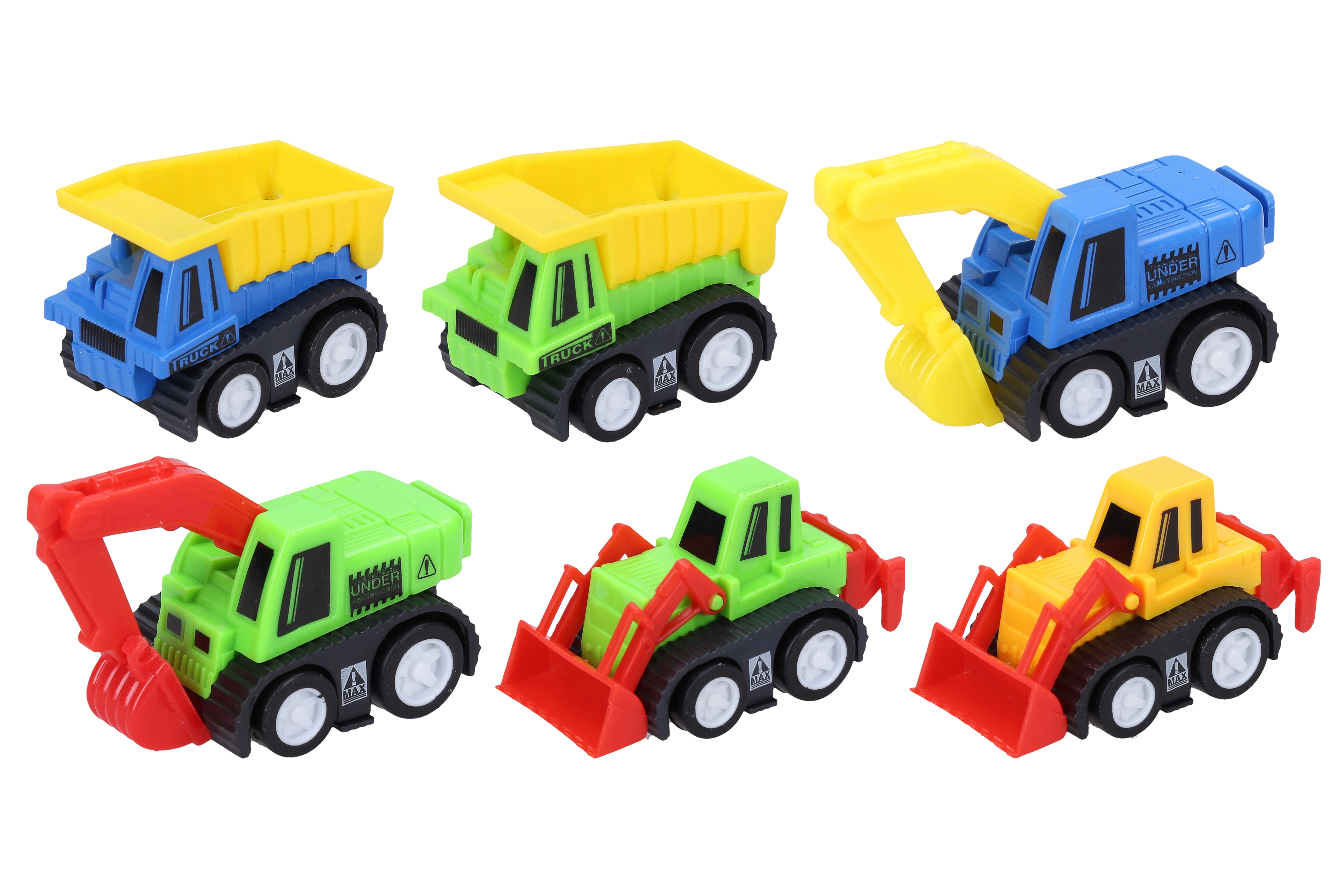 Sešu plastmasas celtniecības mašīnīšu komplekts ar atvilkšanas mehānismu iepriecinās visus mazos celtniekus. Pateicoties kompaktajam 6 cm izmēram, tās lieliski der bērna rokai, un darbi “būvlaukumā” ar šiem mazajiem palīgiem ies no rokas!