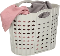 Uzturiet kārtību stilīgi un bez piepūles. Šis saliekamais veļas grozs viegli salokās plakans, tāpēc, kad to nevajag, tas aizņem minimāli daudz vietas. Izturīgais plastmasas korpuss ar perforācijām nodrošina gaisa plūsmu, lai veļa neielēktu nepatīkamu aromātu.