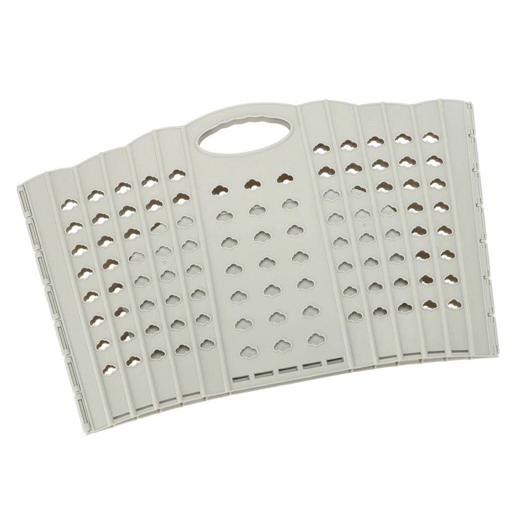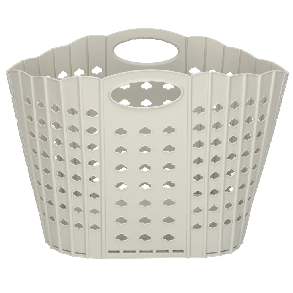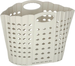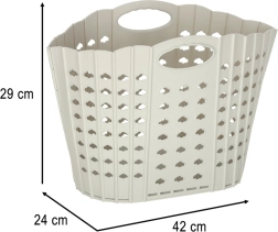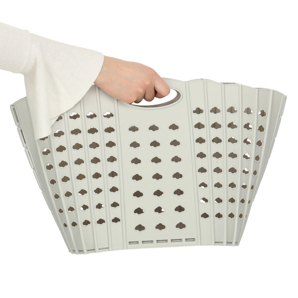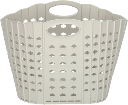 Praktisks saliekams veļas grozs pelēkā krāsā ietaupa vietu un atvieglo mājokļa organizēšanu. Pateicoties integrētajiem rokturiem, to ir ērti pārnēsāt, perforētais dizains nodrošina ventilāciju, bet izturīgais plastmasas materiāls labi iztur ikdienas lietošanu. Saliekama konstrukcija, ērts satvēriens un ietilpīgs apjoms padara grozu par ideālu izvēli vannasistabai, guļamistabai un vešistabai.