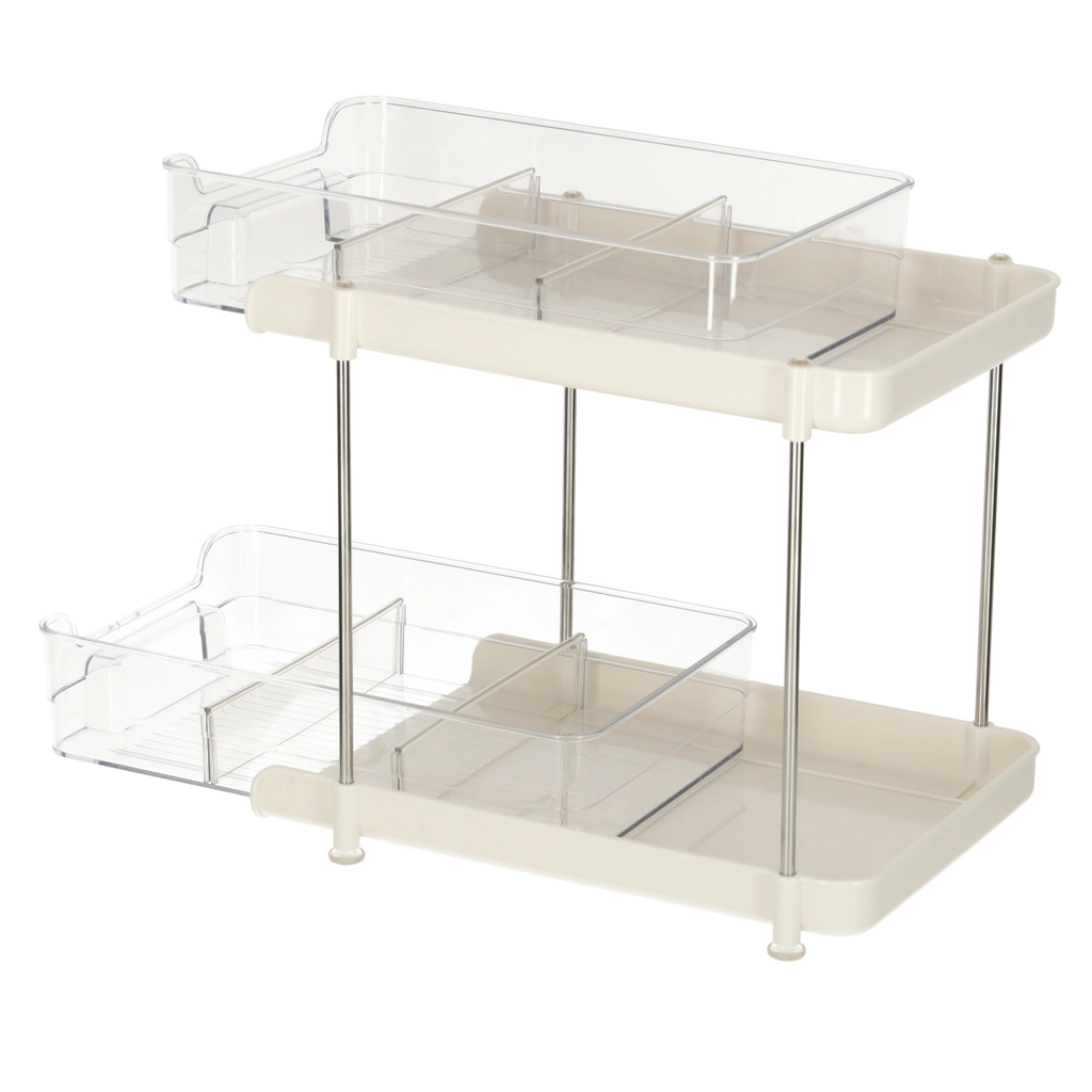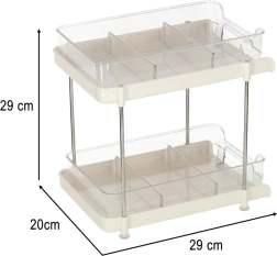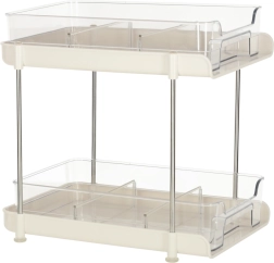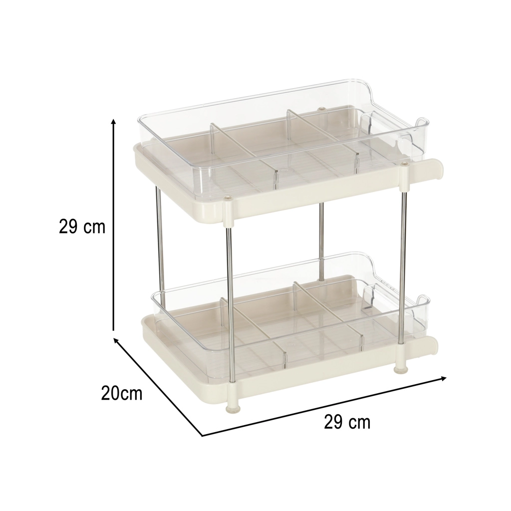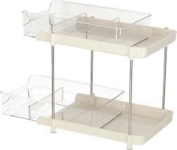 Šis divlīmeņu akrila organizators ienes maksimālu kārtību ikdienā. Caurspīdīgās vannītes atvieglo orientēšanos uzglabātajās lietās, bet izbīdāmā konstrukcija nodrošina tūlītēju piekļuvi visam nepieciešamajam.