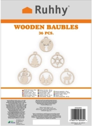 Komplektā ietilpst 36 koka rotājumi, lentes un aukliņas, kas atvieglo piekāršanu un piešķir jūsu dekorācijai tradicionālas elegances noskaņu.