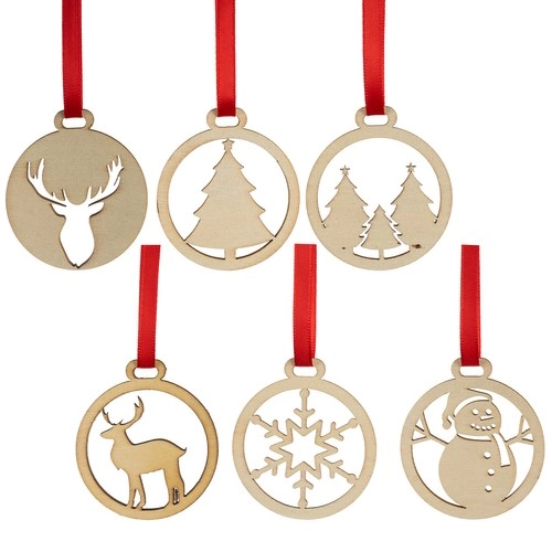 Šie skaistie Ziemassvētku rotājumi ir izgatavoti no kvalitatīvas vieglas koksnes, kas nenoslogo zarus un nodrošina drošu piekāršanu. To dabīgais izskats viegli sader ar jebkuru stilu, un, pateicoties personalizācijas iespējām, varat tos pielāgot savam gaumam, piemēram, krāsām, mirdzumiem vai dekupāžai.
