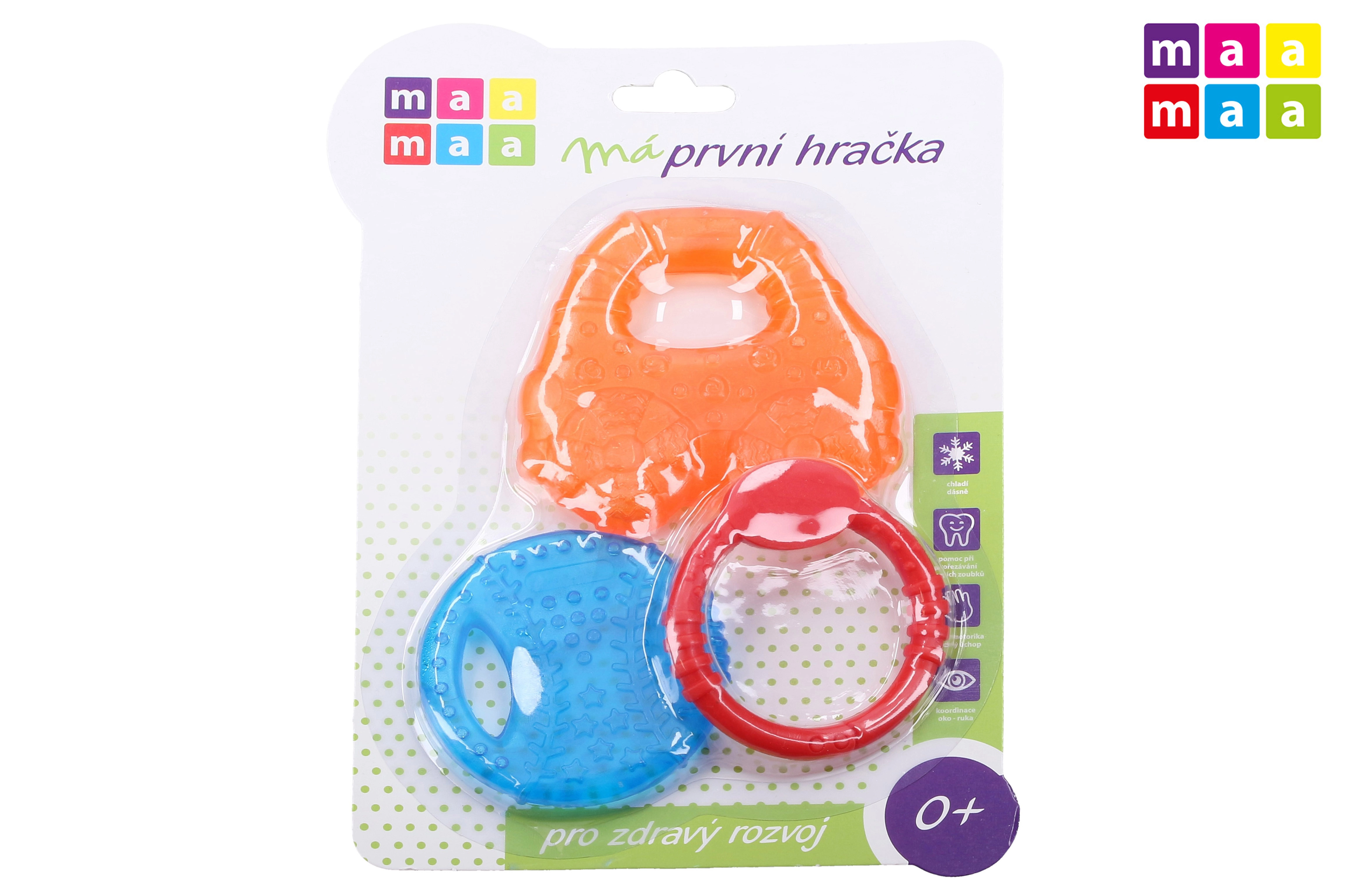 Aukstuma košļājamo rotaļlietu komplekts ir veidots, lai atvieglotu bērniem pirmo zobu augšanu. Pēc atdzesēšanas ledusskapī (aptuveni 1 stundu) vēsums palīdz mazināt smaganu asins pieplūdumu un novērst iekaisumu, savukārt dažādā virsmas tekstūra masē smaganas un veicina dabisku košļāšanu. Pateicoties vieglajai konstrukcijai un patīkamajam materiālam, košļājamās rotaļlietas ir viegli turamas pat pašām mazākajām rociņām.