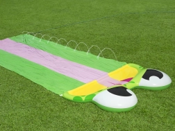 Uzstādīšana ir ātra un vienkārša – vienkārši izritiniet slidkalniņu uz zāles, pievienojiet dārza šļūteni, un izklaide var sākties!