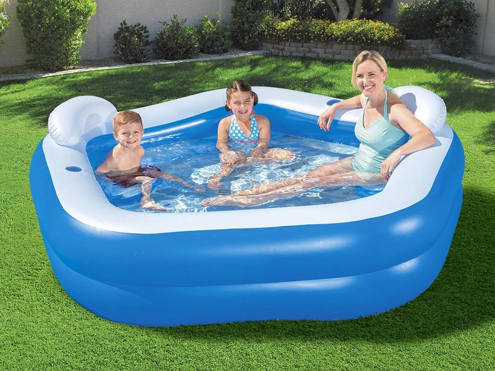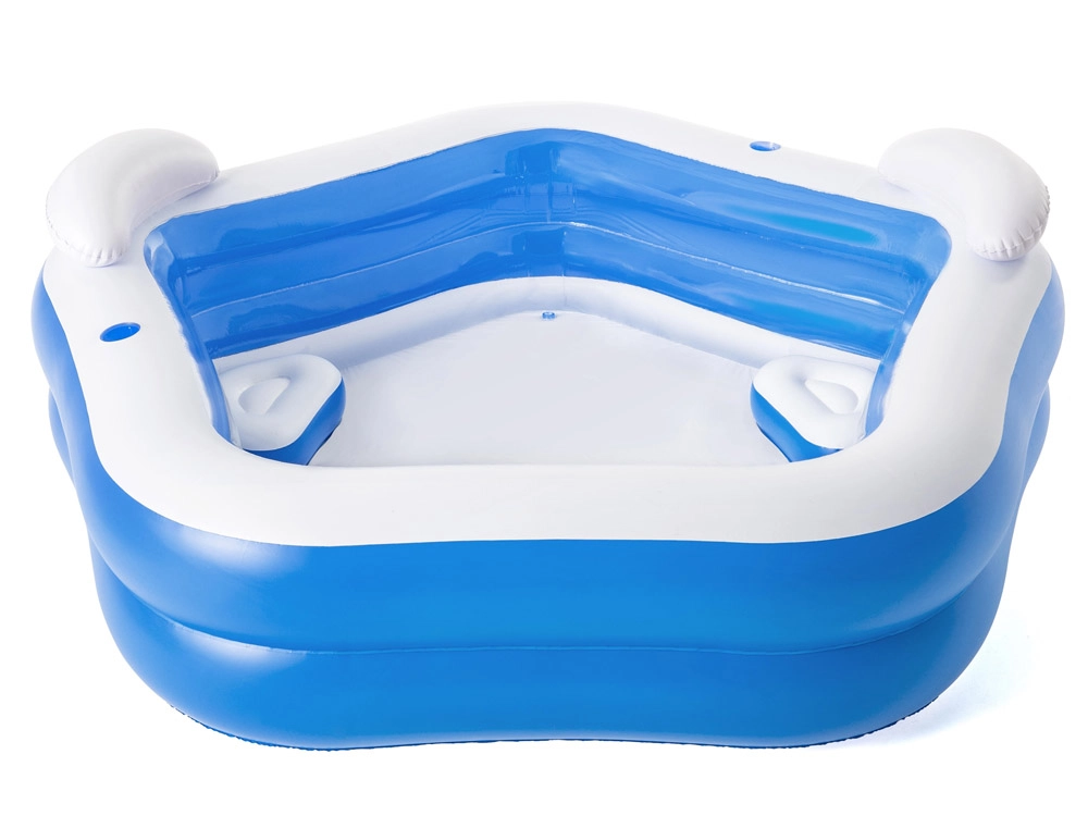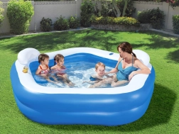 Bestway piepūšamais ģimenes baseins ir ideāli piemērots atpūtai karstās vasaras dienās. To var ātri un viegli uzstādīt – pietiek piepildīt ar ūdeni un baudīt mierpilnus mirkļus. Šis lielais baseins ar mīkstām piepūšamām sienām un galvas balstiem, ar dzērienu turētājiem, nodrošina komfortu visai ģimenei.