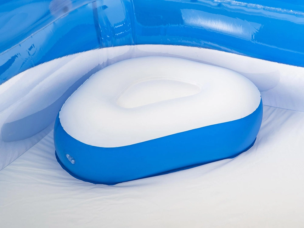 Baseins ir aprīkots ar mīkstām piepūšamām sienām un galvas balstiem maksimālam komfortam atpūtas laikā.