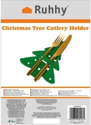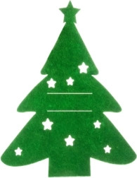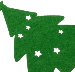 Stilīgs Ziemassvētku galda piederumu maciņu komplekts no izturīga filca pārvērš jebkuru galda klājumu skaisti saskaņotā svētku kompozīcijā. Koši zaļā krāsa ar eglītes formas izgriezumiem un zvaigznītēm ir gan eleganta, gan rotaļīga, tāpēc der gan ģimenes vakariņām, gan svinīgām svētku viesībām.
