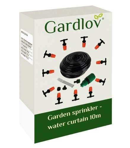 Ūdens miglas aizkars veido smalku miglu, kas absorbē apkārtējās vides siltumu un sniedz patīkamu atvēsinājumu karstās dienās. Pateicoties 11 kvalitatīvām sprauslām ar 6 mm diametru, pārklājums ir vienmērīgs un saudzīgs gan augiem, gan cilvēkiem. Uzstādīšana ir ātra – pietiek pievienot standarta 1/2" ūdens padevei un nostiprināt šļūteni ar komplektā iekļautajām stiepjamajām siksnām.