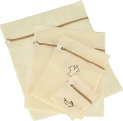 Aizsargājiet savu smalko veļu ar praktisku 6 veļas mazgāšanas sietiņmaisu komplektu. Dažādie izmēri ir piemēroti krūšturiem, zeķēm, zeķubiksēm, krekliņiem un biksēm. Izturīgā sietauduma struktūra nodrošina brīvu ūdens un mazgāšanas līdzekļu plūsmu, savukārt rāvējslēdzēja aizdare droši notur veļu iekšpusē saudzīgai un efektīvai mazgāšanai.