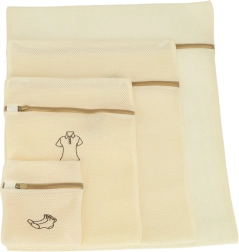 Universāls veļas maisiņu komplekts ir ideāli piemērots smalku audumu aizsardzībai veļas mašīnā. Katram maisiņam ir atšķirīgs izmērs un piktogramma ērtai izvēlei, tāpēc droši varēsiet mazgāt apakšveļu, krūšturus, zeķubikses un arī lielākus apģērba gabalus. Izturīgais sietaudums nodrošina efektīvu mazgāšanu bez aizsērēšanas un pasargā audumus no aizķeršanās un deformācijas.