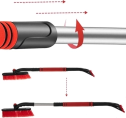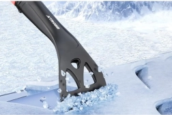 Viegli atvienojams skrāpis un birste ļauj katru daļu izmantot atsevišķi, palielinot rīka daudzpusību. Kompaktais dizains (80 cm salocītā stāvoklī) atvieglo glabāšanu automobiļa bagāžniekā. Ergonomisks rokturis ar EVA putu pārklājumu nodrošina ērtu satvērienu un aizsardzību pret aukstumu.