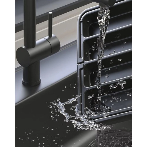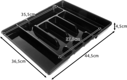 Pamata iestatījumā piedāvā 5 nodalījumus, bet izvelkot – līdz pat 7, tādējādi iegūstat vairāk vietas gan galda piederumiem, gan virtuves rīkiem. Gludo virsmu pietiek noslaucīt ar mitru drānu – ātri un higiēniski.