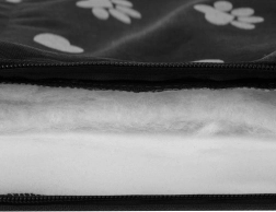 Ūdensizturīgs virsmas pārklājums aizsargā gultas iekšpusi no netīrumiem un mitruma, nodrošinot vieglu tīrīšanu un ilgmūžīgu lietošanu. Šī gulta ir droša un izgatavota no netoksiskiem, dzīvniekiem draudzīgiem materiāliem, kas neizraisa alerģijas. Ar iespēju mazgāt veļas mašīnā tīrības uzturēšana ir vienkārša.