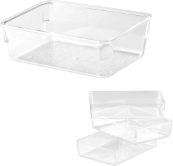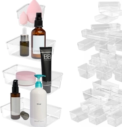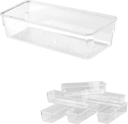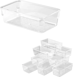 Šis daudzfunkcionālais organizatoru komplekts apvieno lakonisku dizainu un praktisku funkcionalitāti. Caurspīdīgais izpildījums ļauj uzreiz pārskatīt saturu, un, pateicoties dažādiem izmēriem, varat viegli pielāgot izvietojumu katrai atvilktnei, plauktam un darba virsmai.