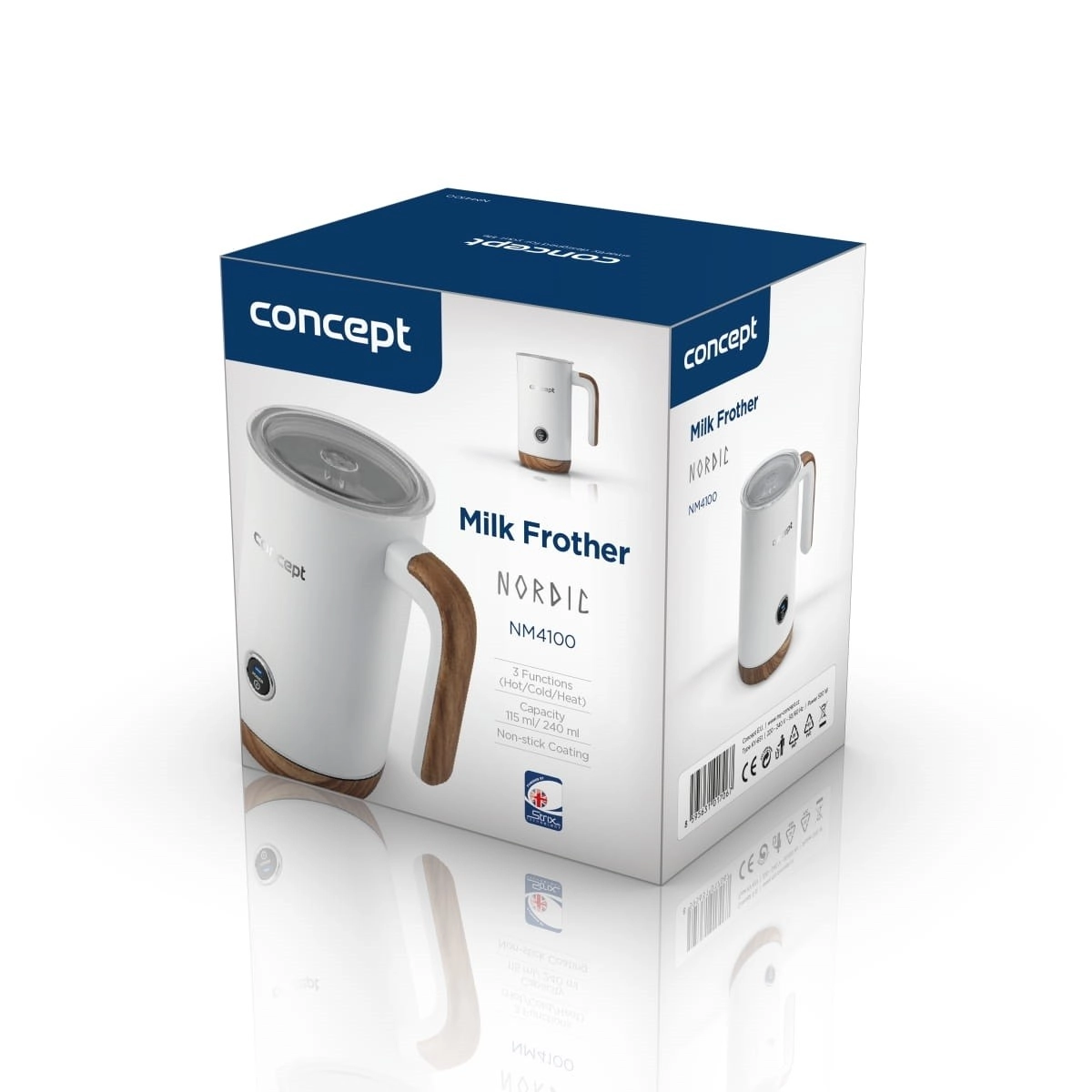 Iekārta aprīkota ar britu STRIX savienotāju un nelīpošu pārklājumu, kas novērš piena piedegšanu. Aizsardzība pret pārkaršanu un rotējoša pamatne nodrošina drošību un ērtu lietošanu.