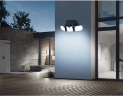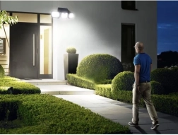 Trīs regulējami paneļi ar 180 LED diodēm nodrošina 550 lm spilgtumu un platu 300° gaismas staru leņķi pilnīgai zonas pārklāšanai.