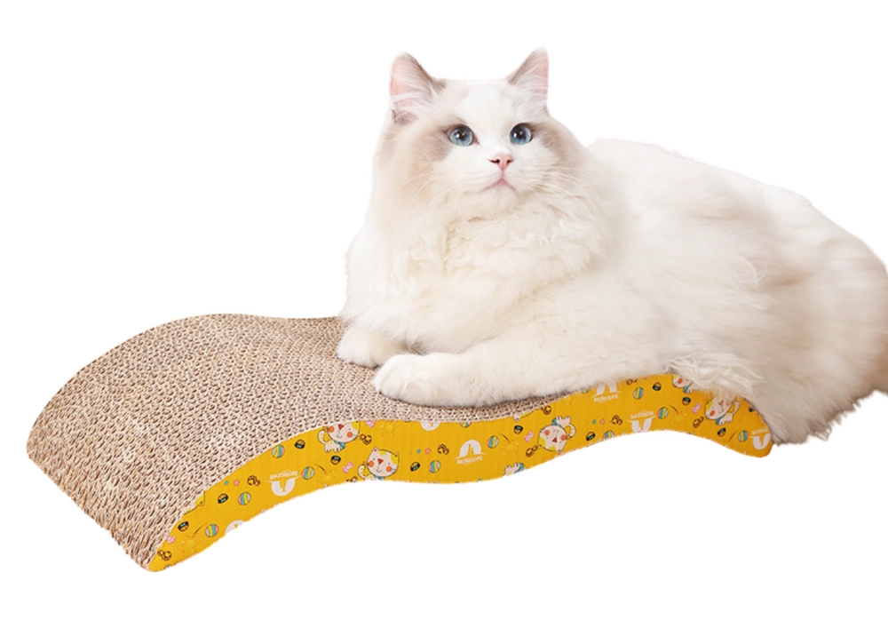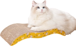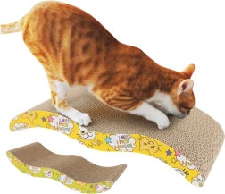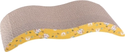 Šis kartona skrāpēšanas guļamkrēsls ar viļņveida profilu lieliski apmierina kaķu dabiskās vajadzības – tas nodrošina izturīgu skrāpēšanas virsmu un vienlaikus ērtu guļamvietu mierīgai atpūtai. Dabīgais kartons lieliski mudina skrāpēt, mazina stresu un uztur nagus labā formā, bet rotaļīgais dzeltenais apdruku dizains iepriecina saimnieka aci.