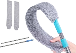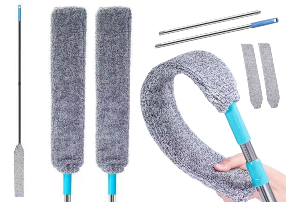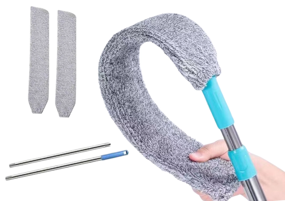 Mūsu teleskopiskā putekļu slota ar mikrošķiedras galvu ir elastīga un viegli tiek līdz grūti pieejamiem stūriem, piemēram, griestu stūriem, vietām aiz mēbelēm vai starp žalūzijām. Tās konstrukcija ļauj ērti manevrēt šaurās vietās, savukārt noņemamā galva nodrošina ātru tīrīšanu pēc katras lietošanas.