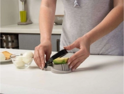 Stipru stiepļu komplekts sagriež olas plānās, vienādās šķēlēs – ideāli salātiem un sendvičiem.