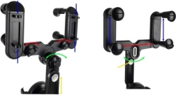Četru punktu stiprinājums ar skrūvēm un atsperu svirām droši fiksē turētāju pie spoguļa un novērš nobīdi pat braucot pa nelīdzeniem ceļiem.