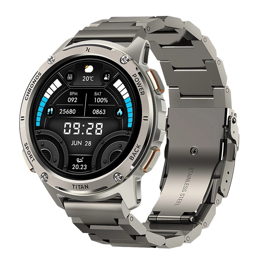 Maxcom Titan Chronos ir radīts ilgmūžībai. Izturīgs nerūsējošais tērauds, metāla siksniņa un izteikti vadības elementi piešķir pulkstenim izskatu un noturību, uz kuru var paļauties. Viegli salasāms displejs skaidri parāda laiku, datumu, laikapstākļus un akumulatora līmeni, lai svarīgākais vienmēr būtu redzams.