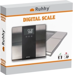 Viedie analītiskie svari RUHHY sniedz jums precīzu ķermeņa pārskatu: svars 5–225 kg, BMI mērīšana, ķermeņa tauki, ūdens un muskuļu masa. Ir pārskatāms LCD displejs, līdz 10 lietotāju profiliem ar viedu atpazīšanu un vienkāršu vadību ar SET/UNIT pogām. Izturīga konstrukcija no stikla un ABS, automātiska izslēgšanās un mērvienību izvēle kg/lb/st ērtai lietošanai visai ģimenei.