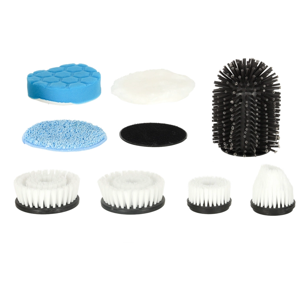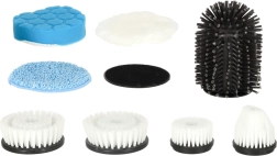 Komplektā dažādas birstes un paliktņi skrubēšanai, mazgāšanai un pulēšanai. Viegli tiksiet galā ar flīzēm, šuvēm, santehniku, stiklu un arī ar plīts virsmu.