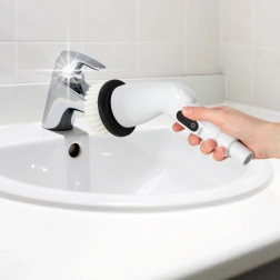Maināmie uzgaļi ietver birstes, sūklīšus un pulēšanas paliktņus dažādām virsmām – flīzēm, šuvēm, vannām, izlietnēm, stiklam un plīts virsmām. Iebūvēts akumulators 3,7 V / 2000 mAh nodrošina līdz 30 minūšu darbību ar vienu uzlādi, un to viegli uzlādēt ar USB kabeli.