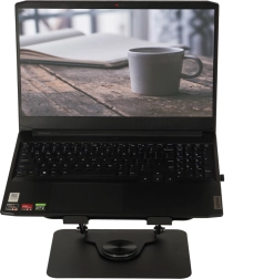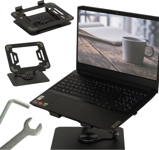 Statīvu var pagriezt par 360°, nodrošinot elastību klēpjdatora novietošanā.