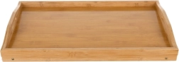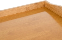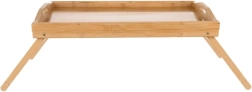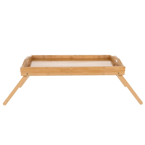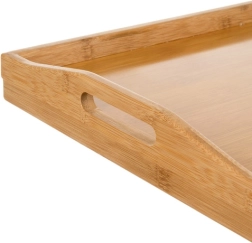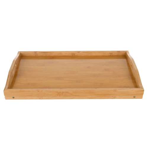 Dabīgā bambusa virsma ir gluda, viegli tīrāma un neuzsūc smakas. Paaugstinātās malas un praktiskie sānu rokturi atvieglo pārvietošanu un novērš priekšmetu noslīdēšanu. Pēc lietošanas vienkārši salokiet kājas un novietojiet galdu skapī, zem gultas vai aiz dīvāna.