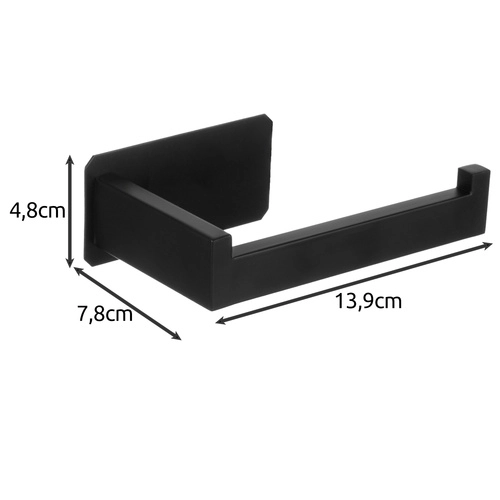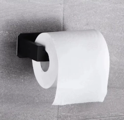 Elegants un izturīgs tualetes papīra turētājs matēti melnā krāsā no nerūsējošā tērauda modernām un industriālām vannas istabām. Nodrošina stabilu montāžu ar līmlenti, ir izturīgs pret mitrumu un to var noņemt, nebojājot virsmu. Pateicoties gudram āķveida noslēgumam rullis nenoslīd, bet bezinstrumentu uzstādīšana ir ātra un tīra.