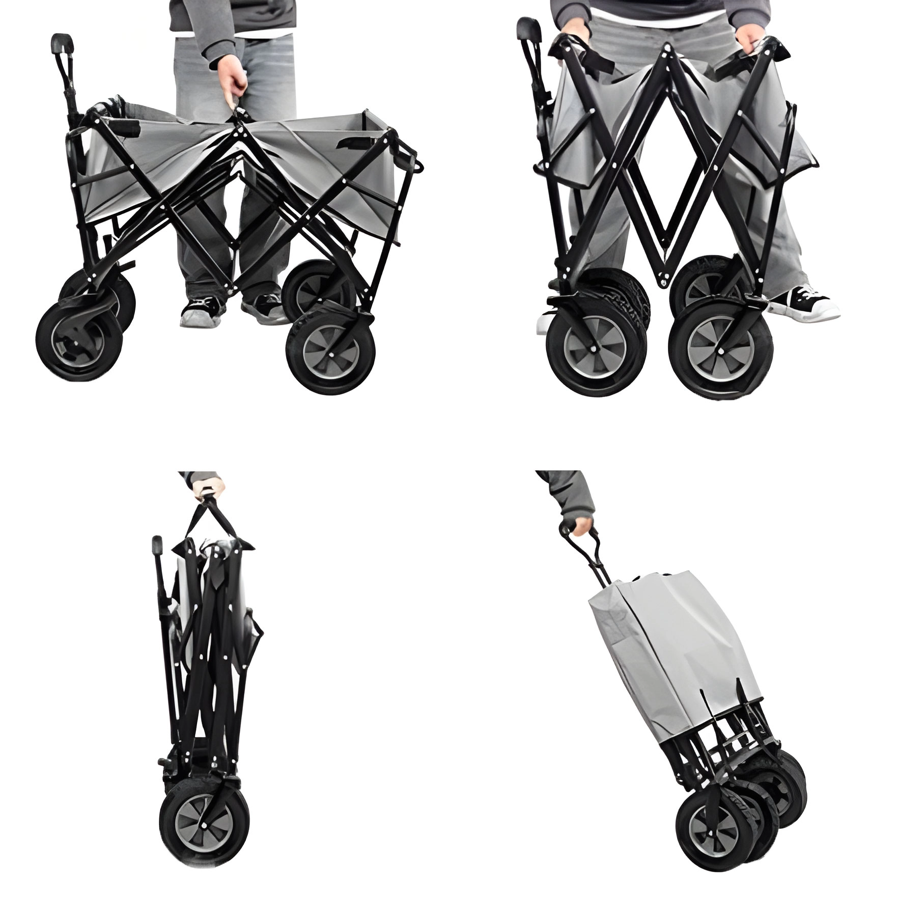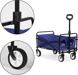 Šie praktiskie ratiņi ir lielisks risinājums dārza darbiem, iepirkumu pārvadāšanai vai kā palīgs pludmalē. Pateicoties ērtajam rokturim, salokāmajam dizainam un izturīgajai metāla konstrukcijai, šie ratiņi ir ideāli jebkurā situācijā un atvieglos dažādu lietu pārvadāšanu.
