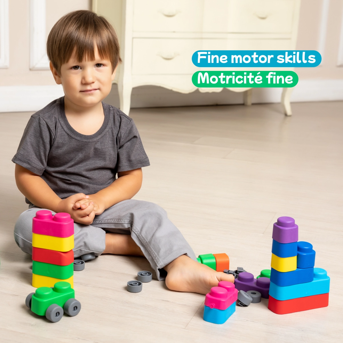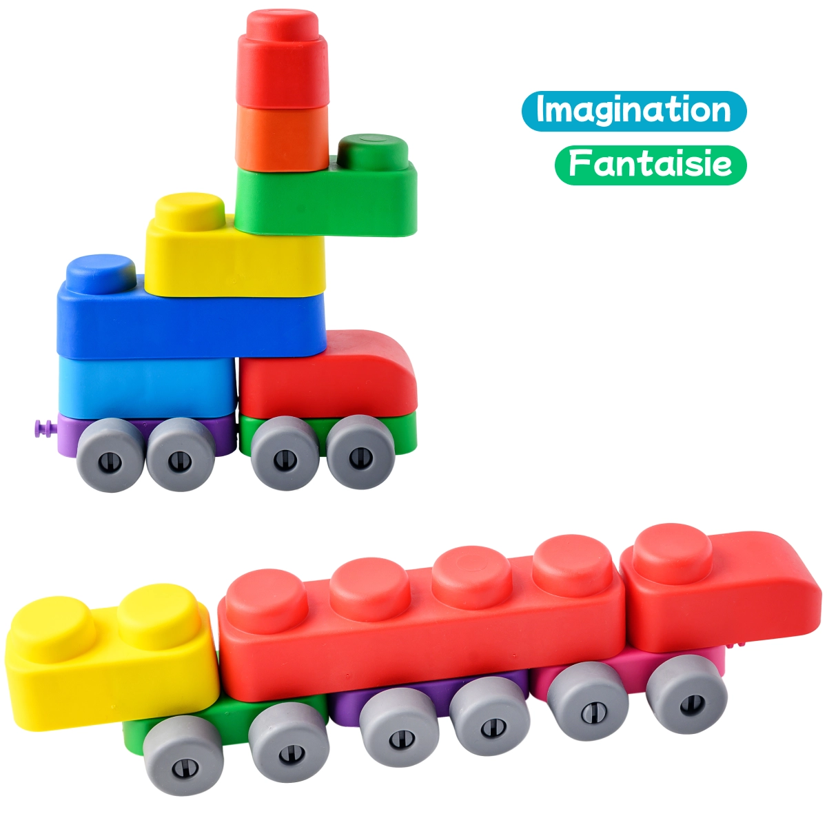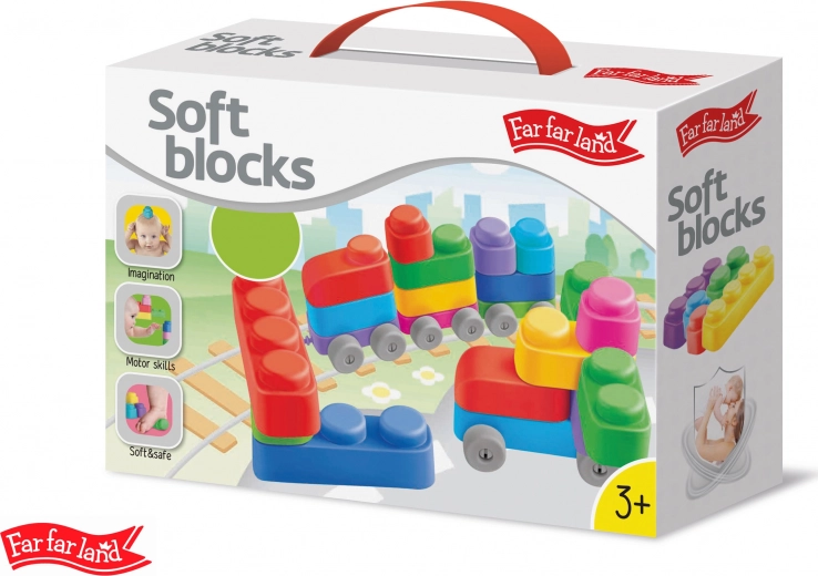 Būvkomplekts Far Far Land ir jautra un radoša rotaļlieta bērniem! Komplektā ir 21 mīksts bloks un 16 ritenīši, kas veicina bērnu motorikas un iztēles attīstību.