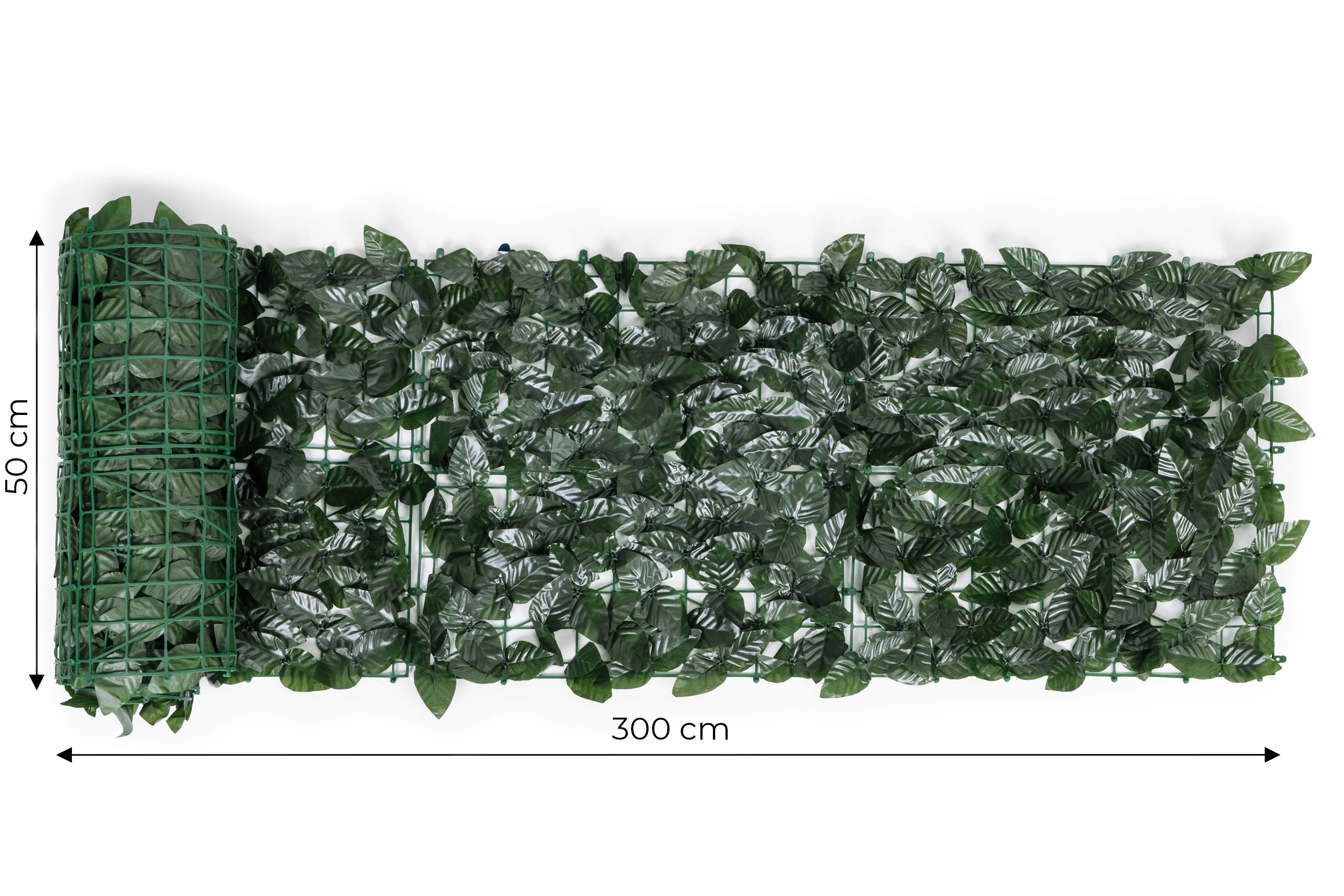 Blīvās lapas efektīvi aizsargā no skatieniem un vēja, vienlaikus piešķirot telpai svaigu, dabisku izskatu bez kopšanas.