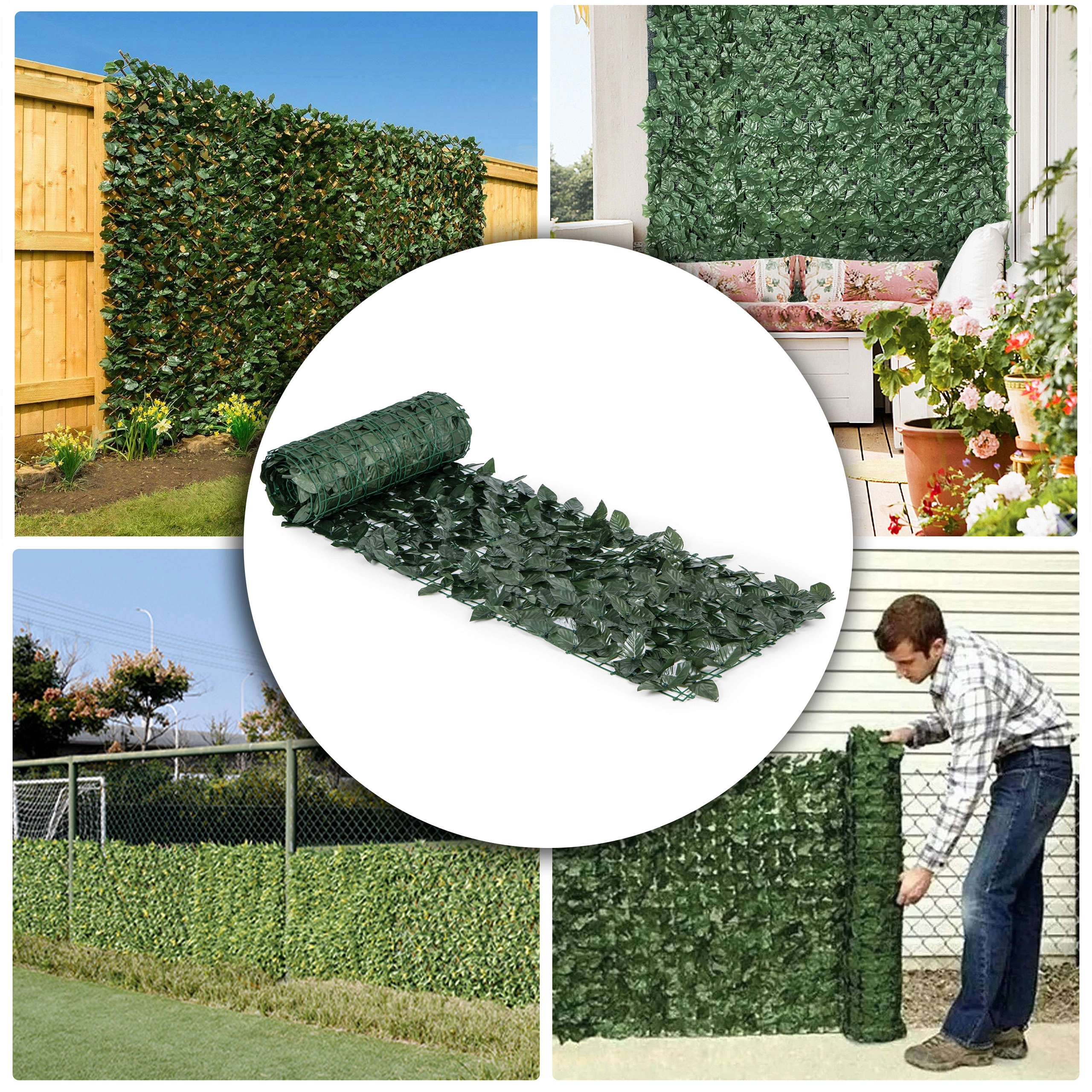 Izveidojiet patīkamu privātumu balkonā, terasē vai dārzā dažu minūšu laikā. Mākslīgais efejas žogs nodrošina efektīvu aizsegu no ziņkārīgiem skatieniem un aizsardzību pret vēju un putekļiem, vienlaikus piešķirot telpai svaigu zaļu izskatu visu gadu bez laistīšanas un apgriešanas.