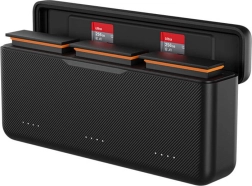 Konstrukcija 2 vienā apvieno uzlādes staciju un izturīgu pārvadāšanas futlāri. Pateicoties magnētiskajai aizdarei un paredzētajai vietai divām TF (microSD) kartēm, jūsu aprīkojums būs drošībā arī laukā. Kompaktie izmēri lieliski der mugursomā – ideāls risinājums ceļojumiem un garām filmēšanas dienām.