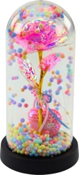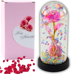Eleganta interjera dekorācija un romantiska dāvana vienā: rozā mūžīgā roze caurspīdīgā kupolā ar maigu LED apgaismojumu, papildināta ar sirsniņu un krāsainām lodītēm. Neprasa kopšanu, tomēr saglabā savu ilgstošo burvību un rada mājīgu atmosfēru jebkurā interjerā.