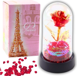Mūžīgā kristāla roze zem kupola ar LED apgaismojumu ir eleganta un simboliska dāvana, kas izsaka visdziļākās jūtas un piešķir izcilu raksturu jebkuram interjeram. Maigā LED gaismā tā rada maģisku atmosfēru, ideāli piemērotu romantiskiem mirkļiem.