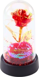 Atklājiet mūžīgās kristāla rozes skaistumu zem caurspīdīga kupola, kas ar savu eleganci apbur ikvienu. Ideāli piemērota tiem, kuri vēlas uzdāvināt mīlestības simbolu, kas neizdzist. LED apgaismojums maigi izgaismo rozi, piešķirot atmosfērai mājīgumu un romantiku.