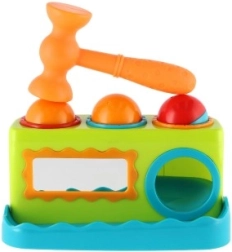 Šī krāsainā plastmasas siļņa 21 cm garumā ir lieliska izvēle pirmajām attīstošajām rotaļām. Bērni droši iesit trīs bumbiņas sagatavotajās atverēs, tā trenējot satvērienu, spēku un precizitāti. Integrētais spogulītis priekšpusē palielina mijiedarbību un jautrību.
