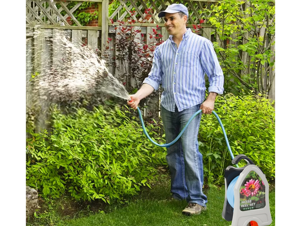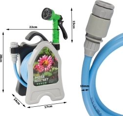 Izbaudiet bezrūpīgu laistīšanu ar kompakto šļūteni uz statīva, kas der jebkuram dārzam vai balkonam. Izturīgais PVC ir noturīgs pret laikapstākļiem un UV starojumu, savukārt praktiskais statīvs ļauj ātri uztīt un glabāt bez sapīšanās.